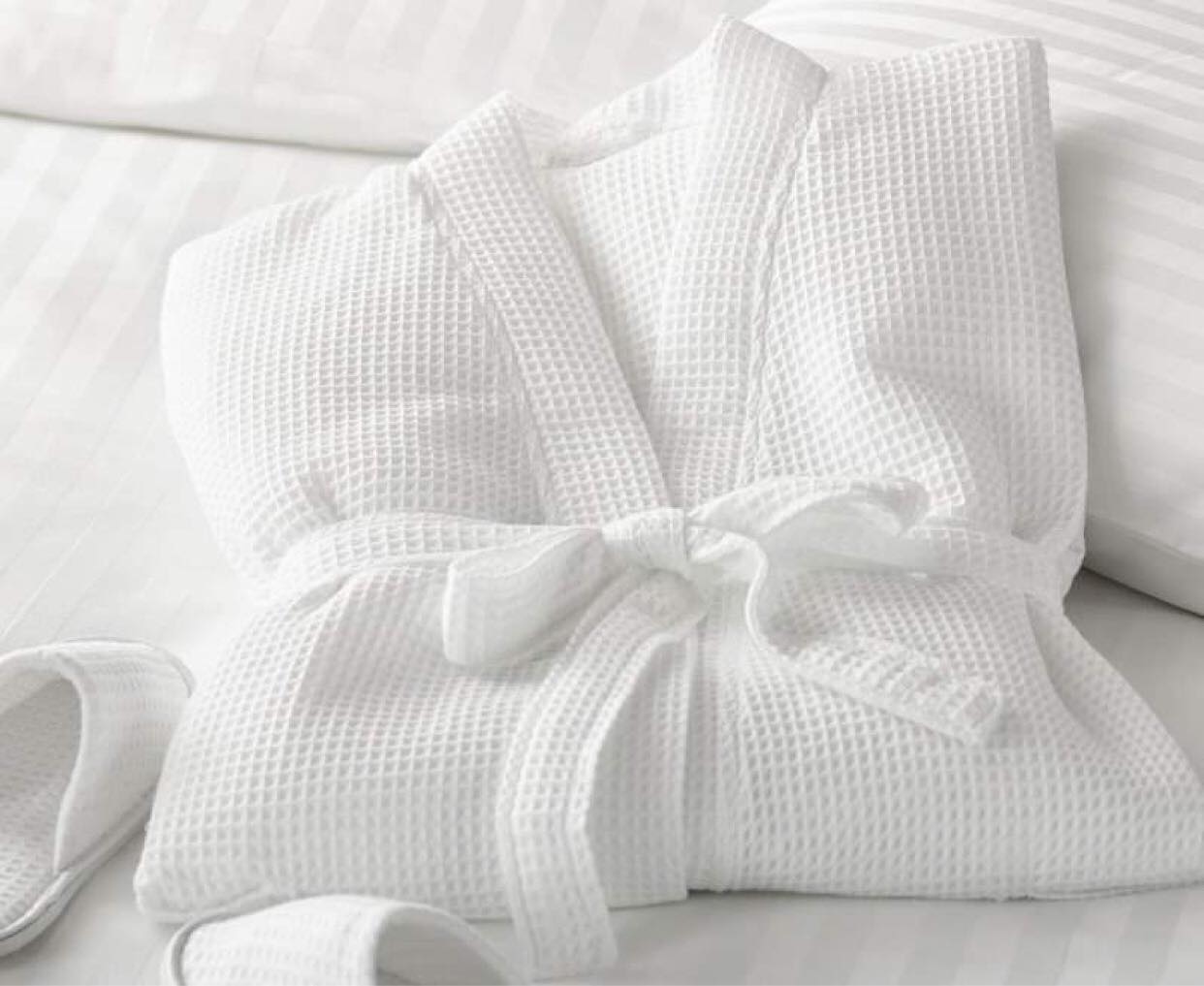 - Áo choàng tắm chất liệu cotton vải tổ ong có đặc tính: mềm mại, thoáng khí, thấm hút tốt, không gây kích ứng da là lựa chọn yêu thích của nhiều khách sạn trong mùa hè và các khách sạn, resrot, khu nghỉ dưỡng thuộc vùng nóng.