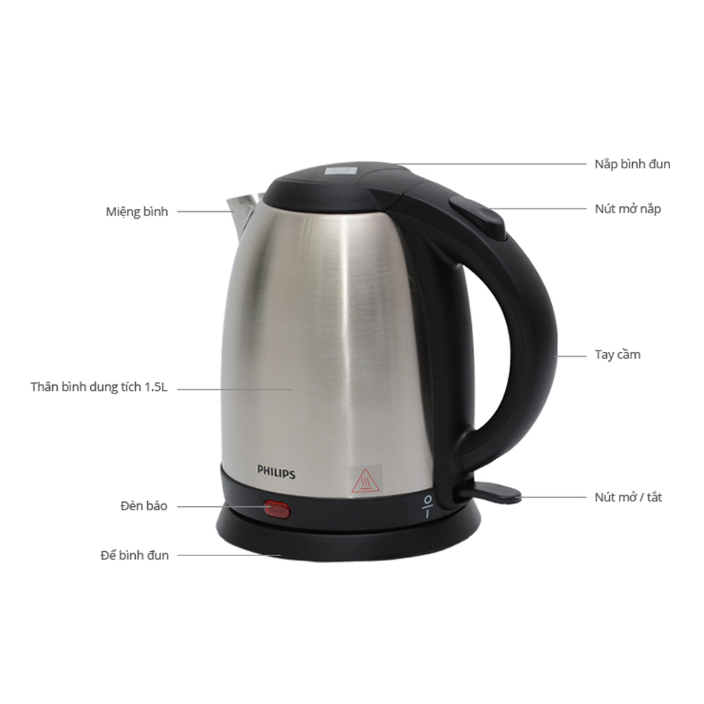 Bình đun siêu tốc Philips 15L thiết kế hiện đại, đun nước nhanh với công suất lớn